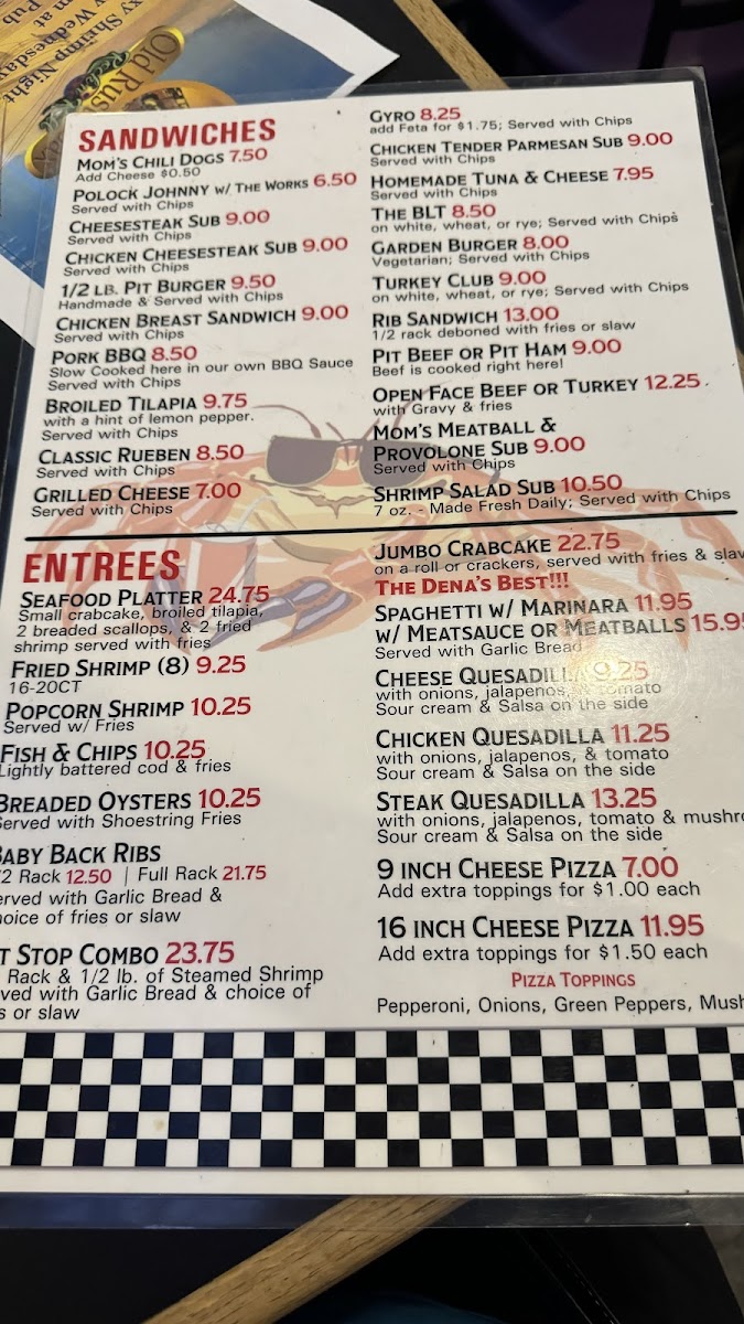 The menu at Pit Stop Pub reflects its straightforward, neighborhood bar vibe, offering a selection of casual bites and comforting drinks that make it a go-to spot for lunch or a relaxed evening. Here, you’ll find hearty sandwiches, seafood favorites, and classic pub snacks that suit a laid-back atmosphere where locals gather and unwind.
